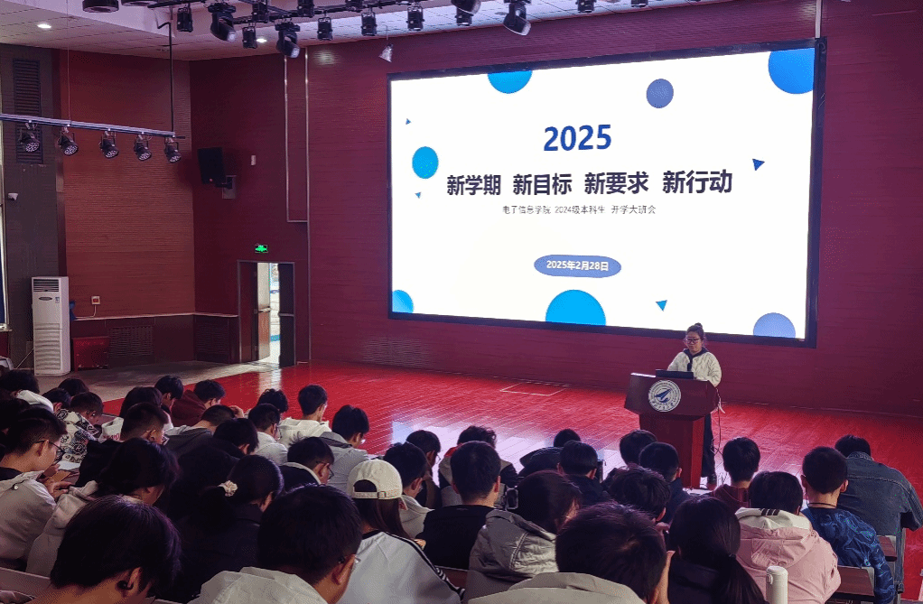 2024级本科生新学期大班会在教西D100召开。本次班会由辅导员唐婧主持,内容涵盖学业发展规划、安全教育、榜样事迹分享等多个方面,引导同学们锚定新目标、提出新要求、展开新行动。
