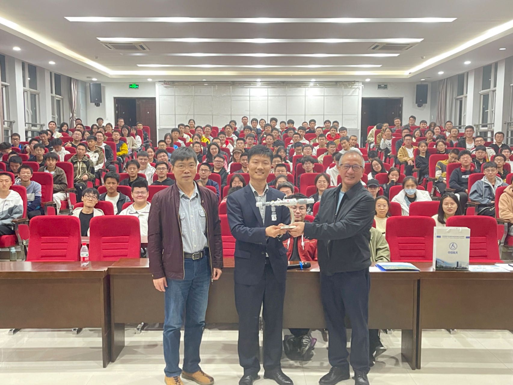 赠送一套中国空间站仿真模型,通过对模型的全方位展示和讲解,使同学们在体验与互动中更深刻地感受到了中国航天的先进技术。